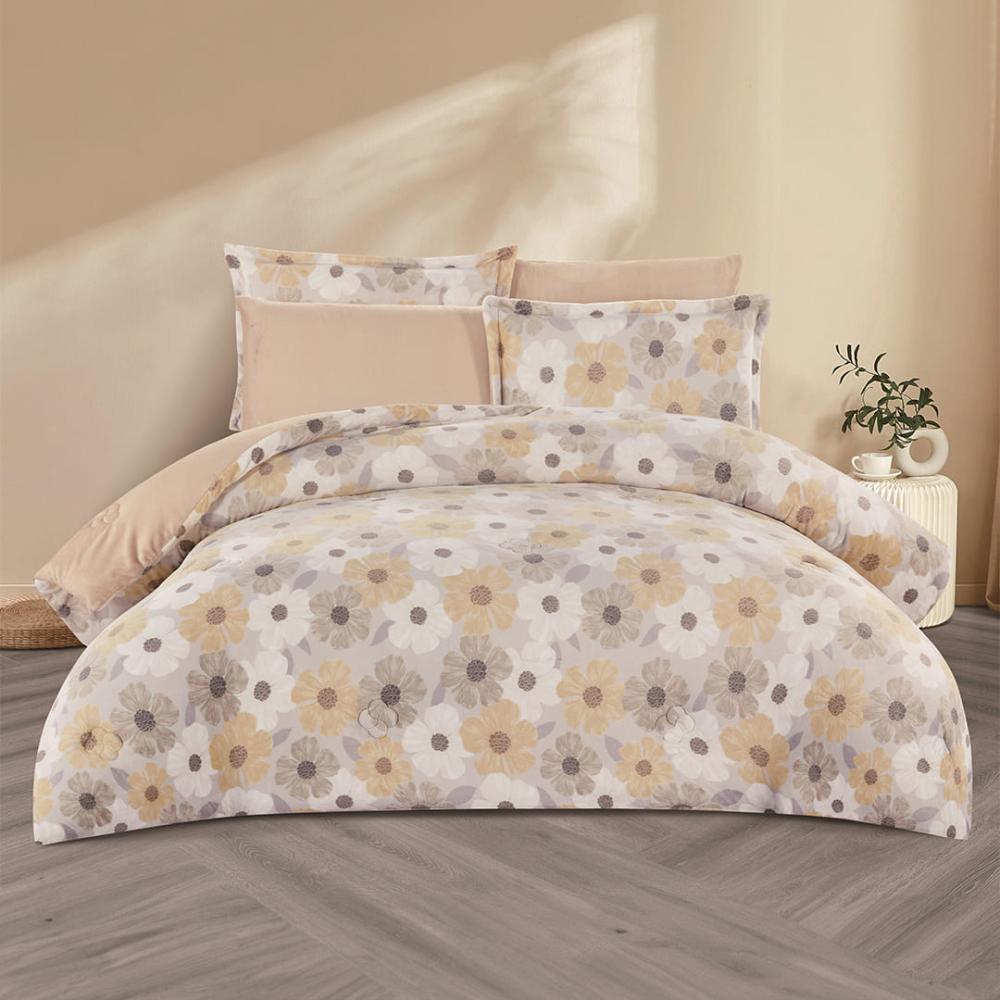 مفرش شتوي مخمل مقاس كوين 6 قطع - اودري - رصاصي - بيج