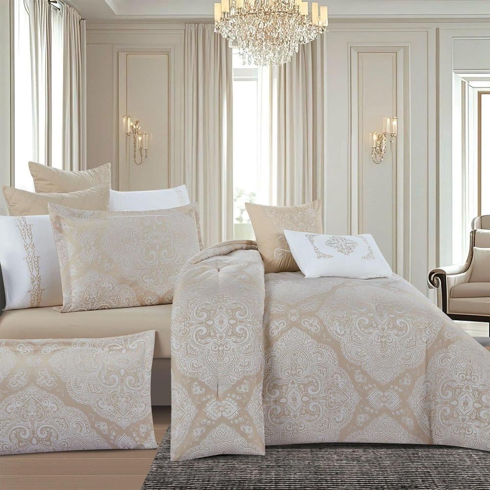 مفرش صيفي فاخر كوين جاكار مطرز 8 قطع – أورليا Aurelia – بيج فاتح