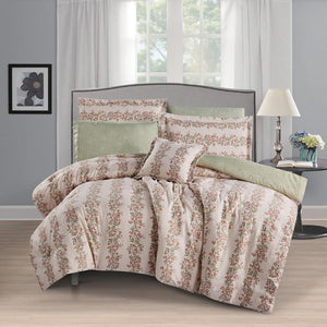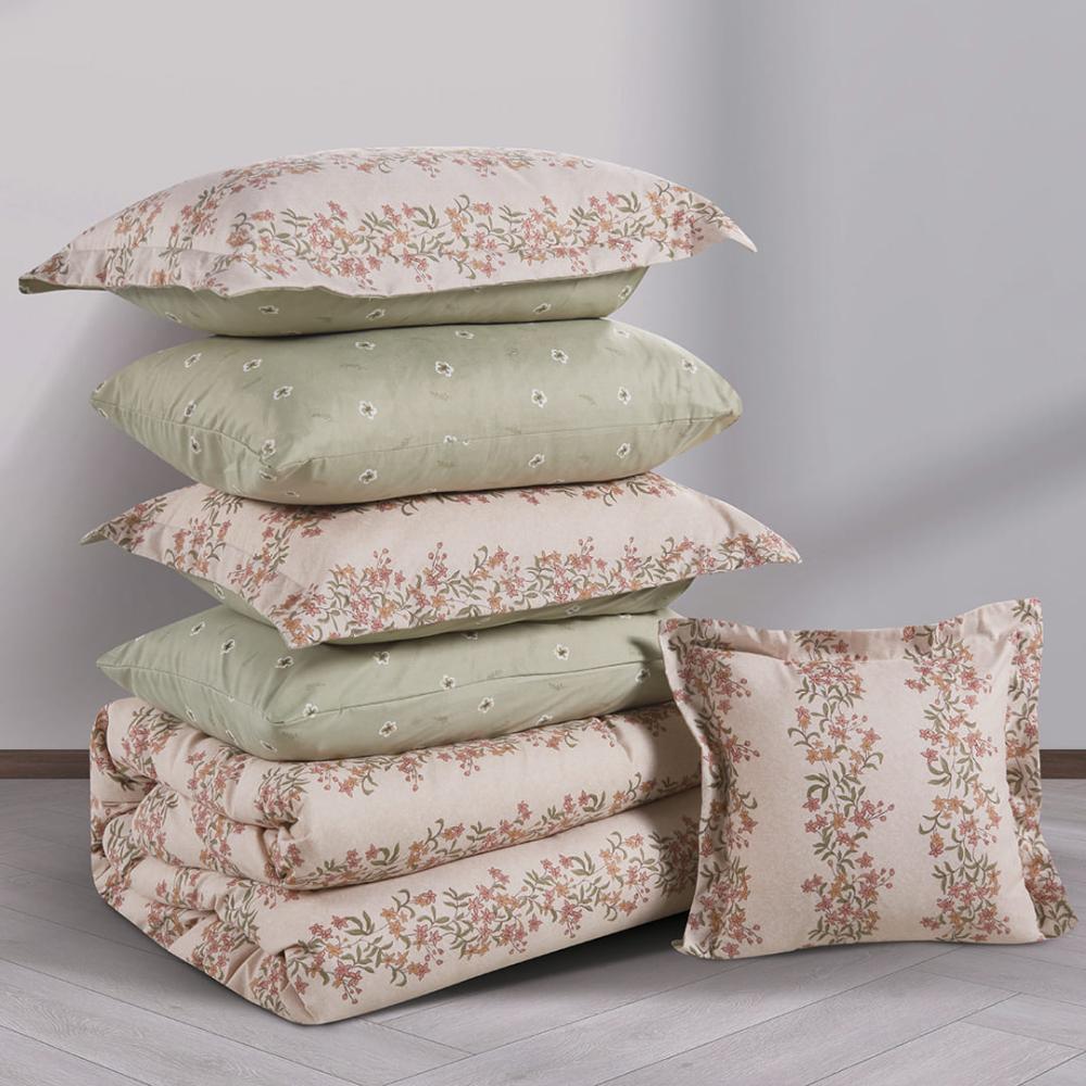 تيودورا مفرش صيفي كوين يحتوي على 7 قطع، يتميز بخامة المايكروفايبر الناعم البديل للقطن لمنحك شعورًا بالراحة.