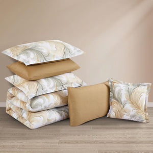 مفرش قطن صيفي مقاس كوين 8 قطع - فيوليتا - بيج - بيج غامق