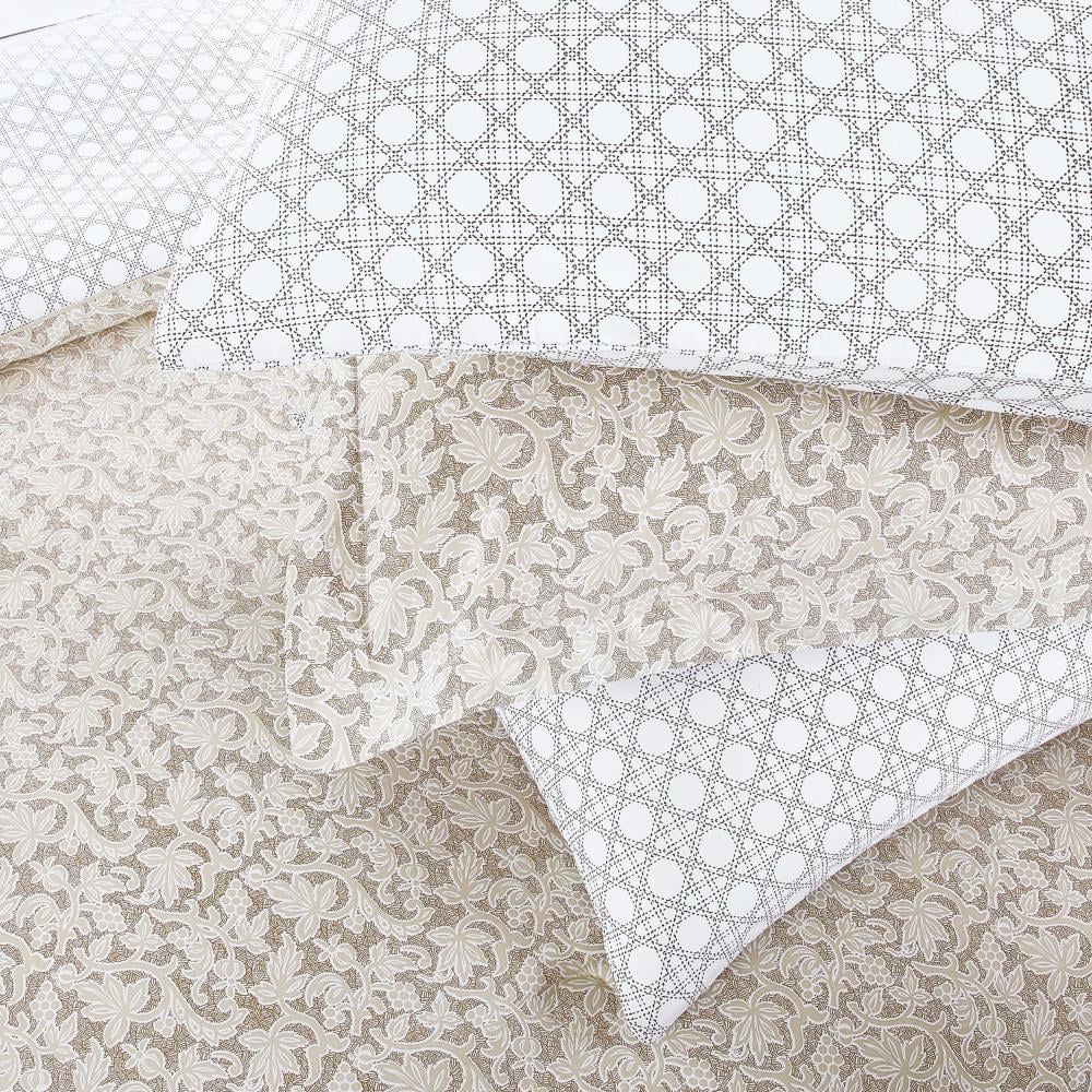 مفرش قطن صيفي مقاس كوين 8 قطع - نوفارين - بيج - ابيض