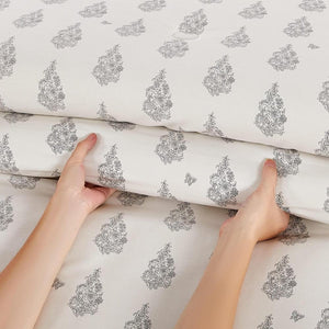 مفرش قطن صيفي مقاس كوين 8 قطع - نوفارين - كريمي - رمادي