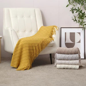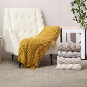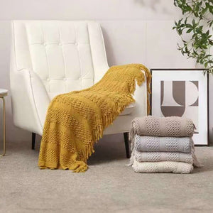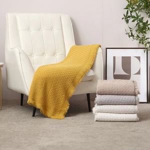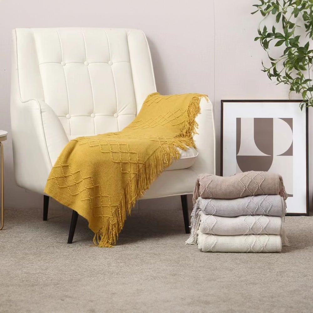نسيج ناعم متطوّر بخامة الاكرليك الخفيفة الدافئة، رمية تستخدم كديكور على الكنب أو كراسي الجلسات الخارجية أو حتى على السرير.