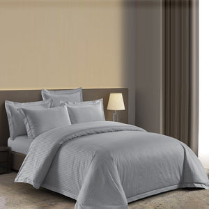 بيت لحاف قطن 300 غرزة مقلم مزدوج 6 قطع - رمادي