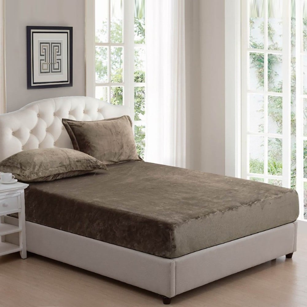 شرشف مزدوج مخمل شتوي بمغاط 3 قطع - بني غامق