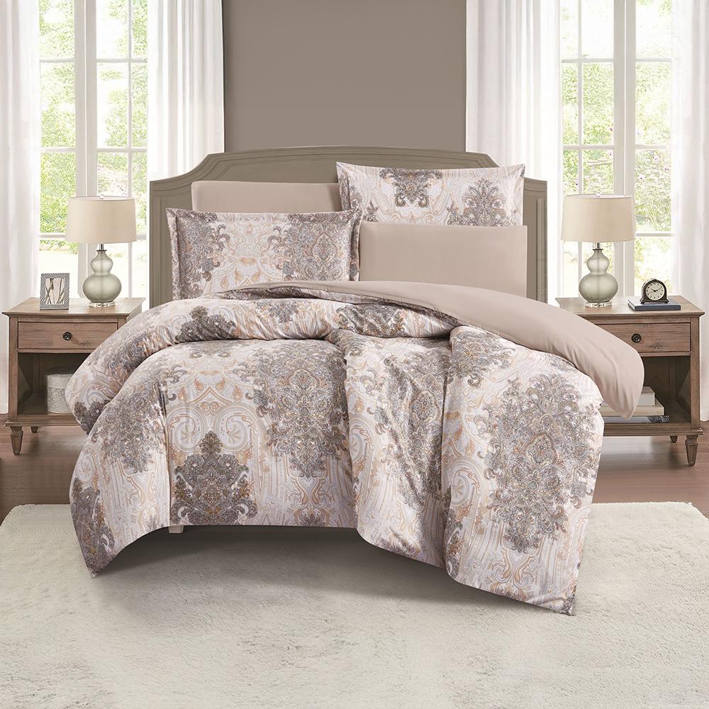طقم بيت لحاف بدون حشوة مزدوج 6 قطع - امالينا - كريمي - بيج