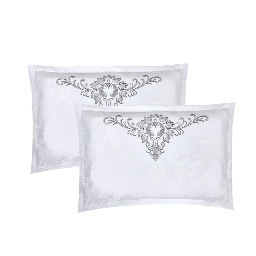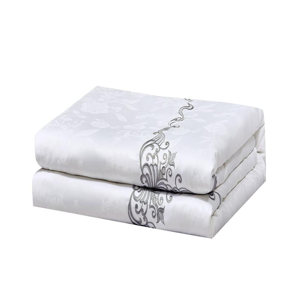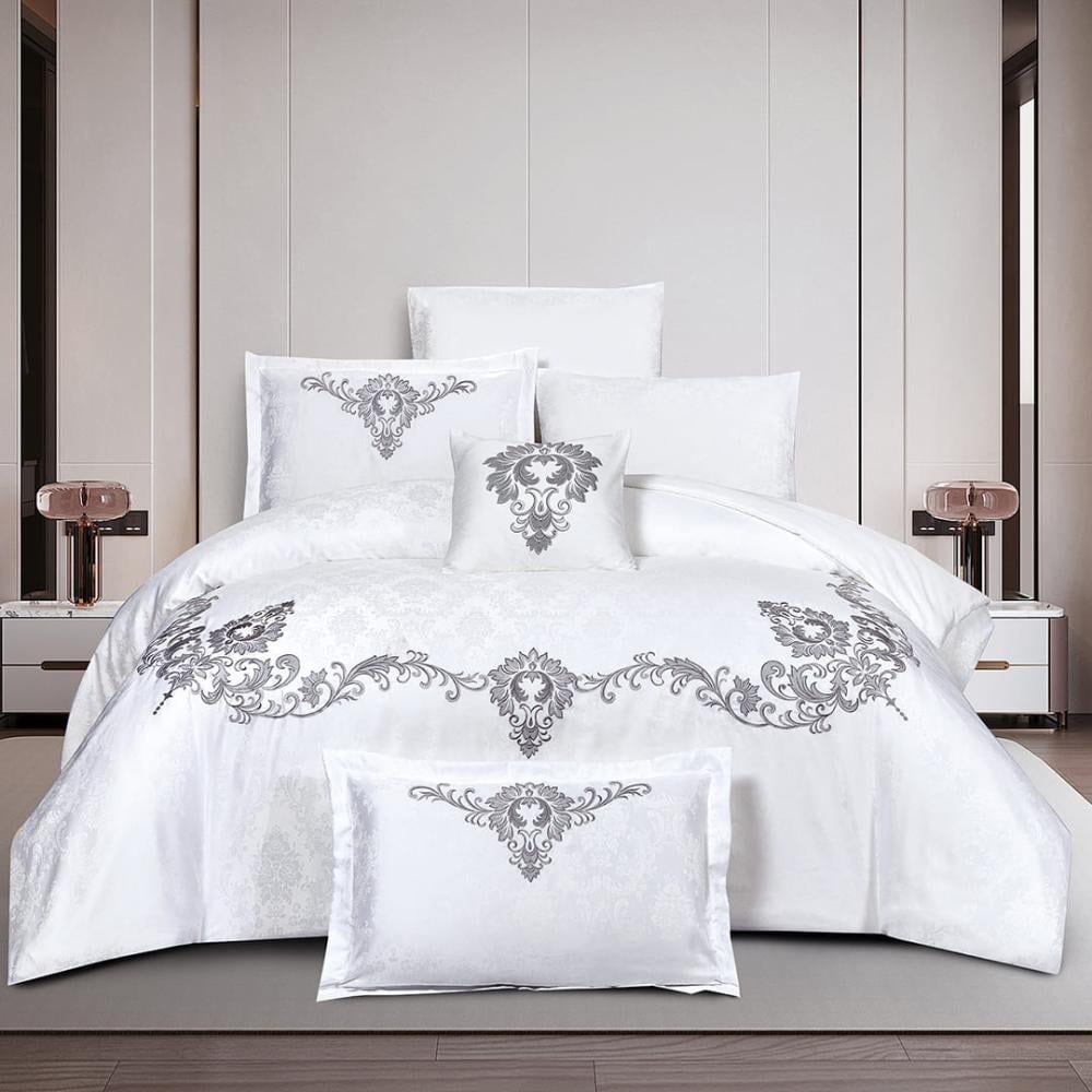 مفرش صيفي مزدوج جاكار مطرز 7 قطع - نيرفانا - أبيض