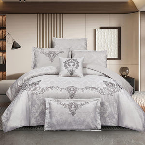 مفرش صيفي مزدوج جاكار مطرز 7 قطع - نيرفانا - رصاصي