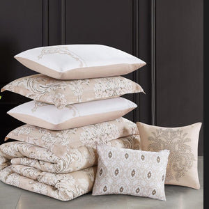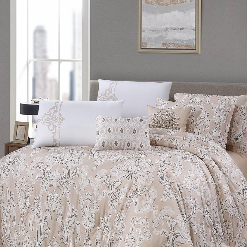 مفرش صيفي مزدوج من قماش التنسيل 8 قطع - ايليثيا -بيج فاتح
