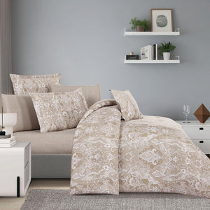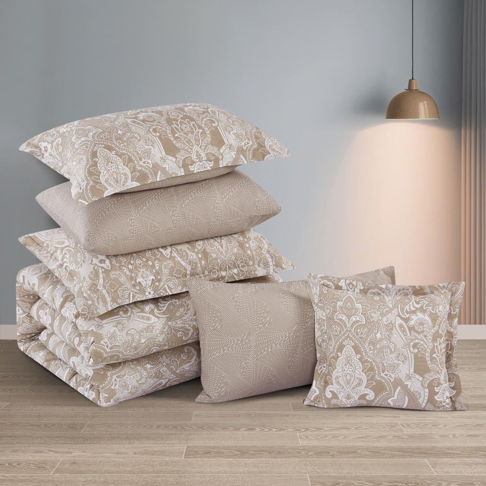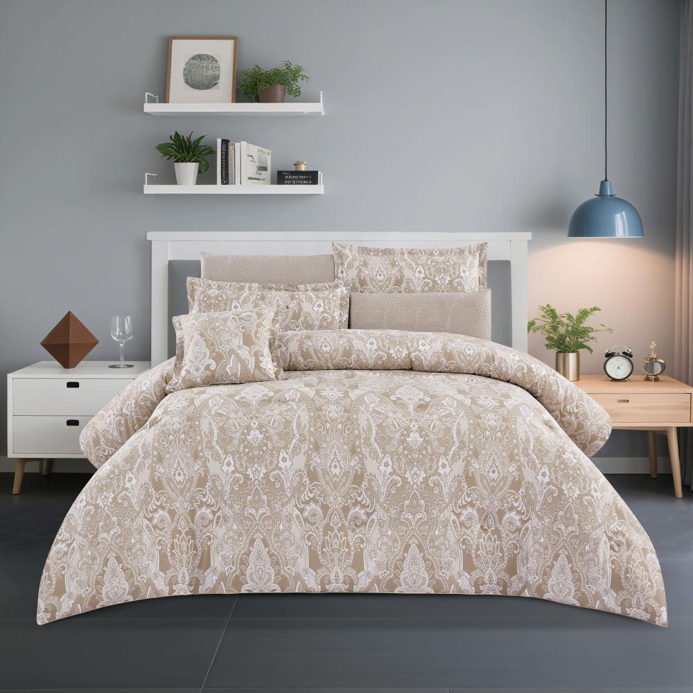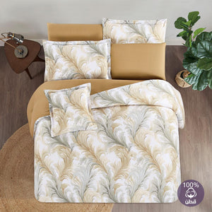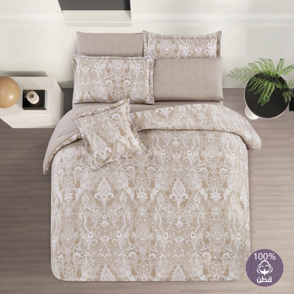 مفرش قطن صيفي مزدوج 8 قطع - افاليون -بيج - بيج غامق