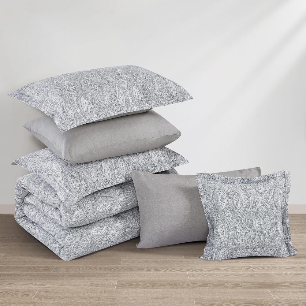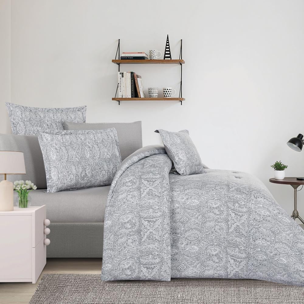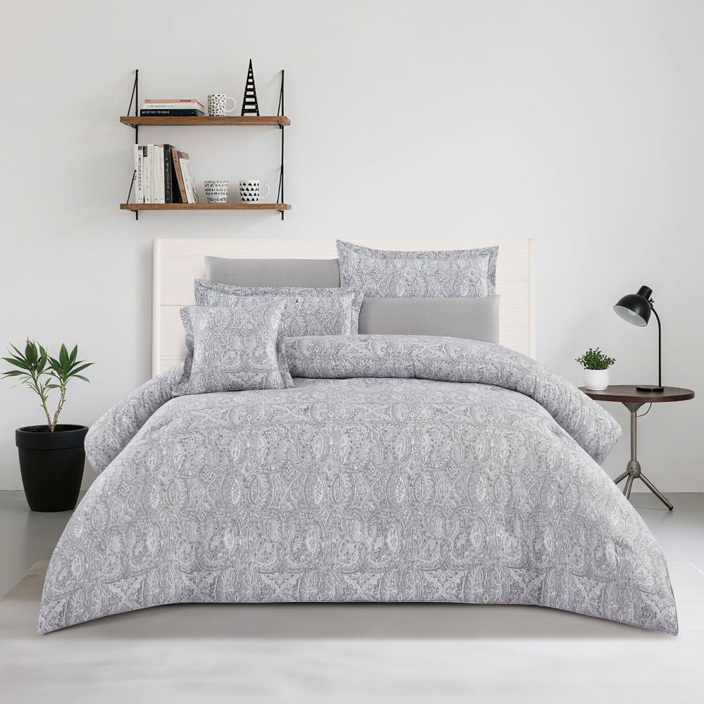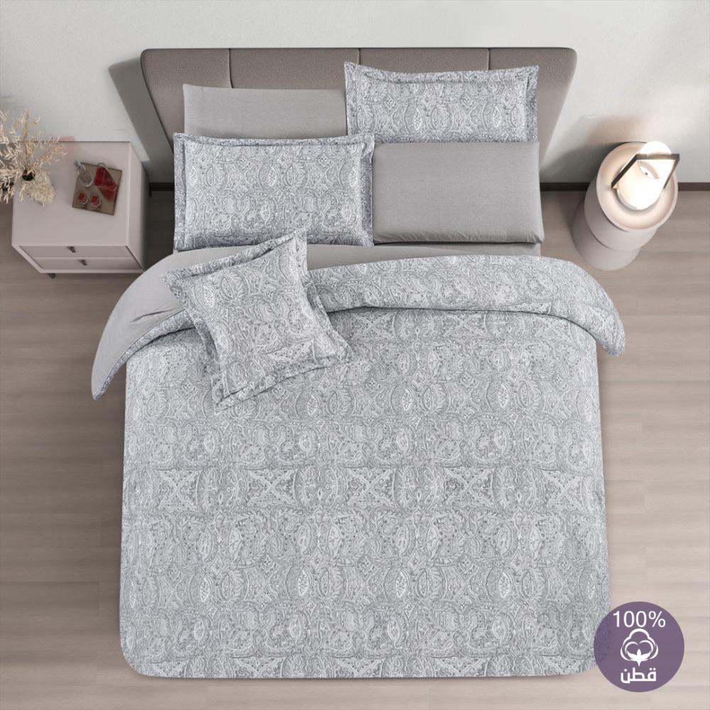 مفرش قطن صيفي مزدوج 8 قطع - افاليون -رمادي - رصاصي