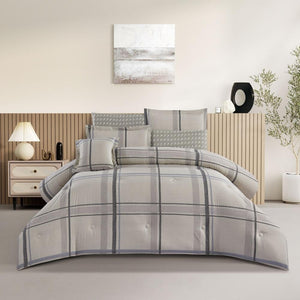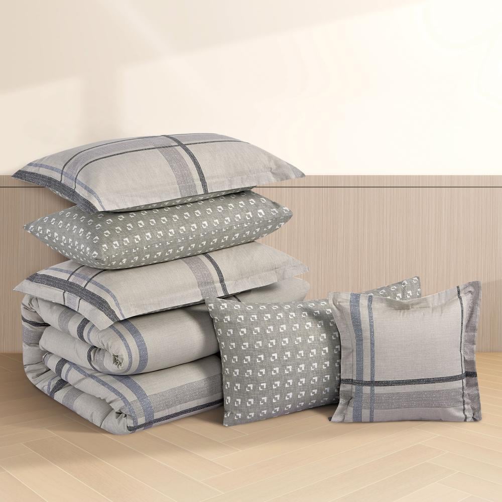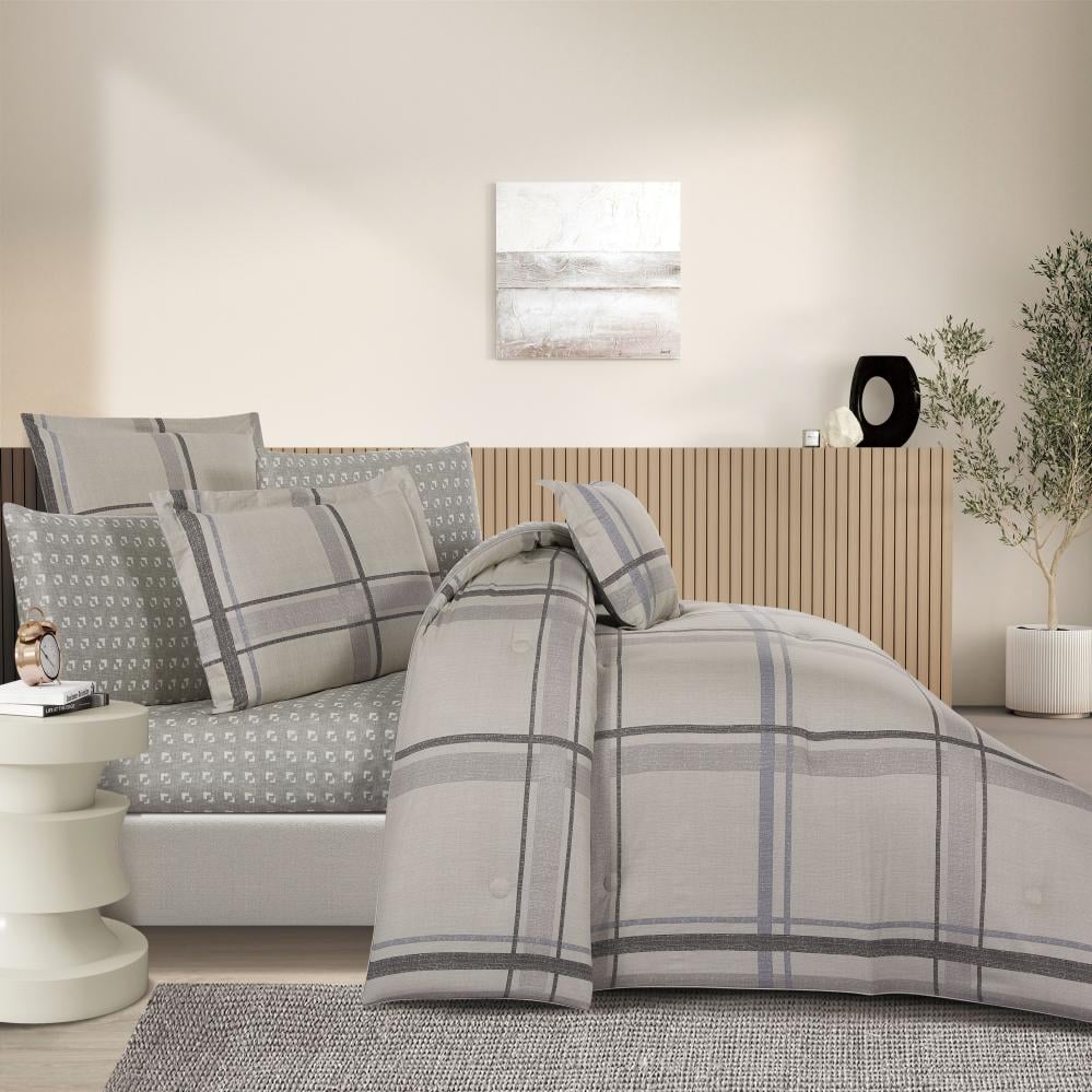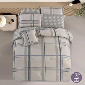 مفرش قطن صيفي مزدوج 8 قطع - زافيرا -بيج - رمادي فاتح