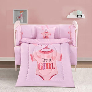 مفرش مواليد مكوّن من 5 قطع بحواجز جانبية لحماية طفلكِ، مصنوع من خامة مايكرو فايبر ناعمة ولطيفة على البشرة ، راحة مثالية وأمان طوال الليل.