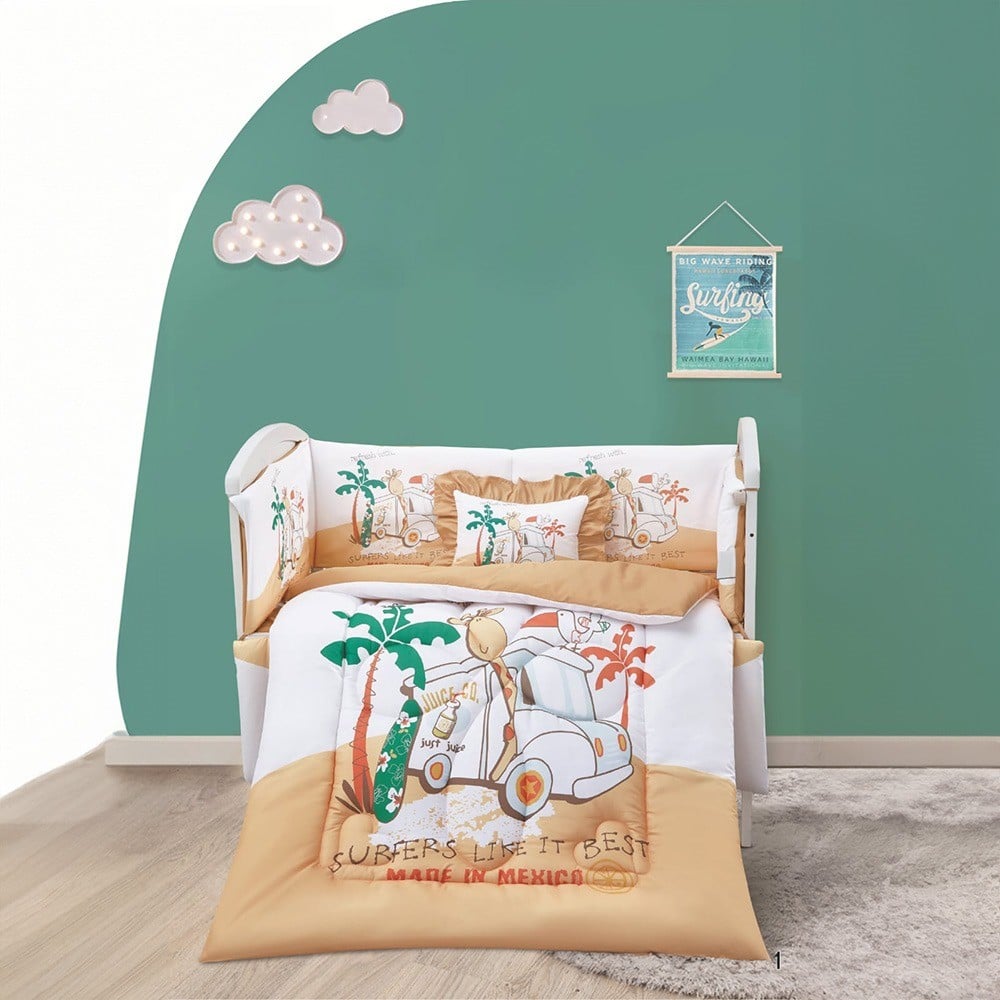 مفرش مواليد مكون من 5 قطّع، مصنوع من المايكرو الناعم، يتميز بتصميم مريح ذو حواجز يحمي طفلك من السقوط.