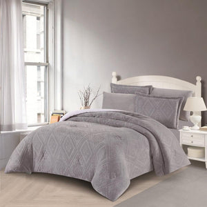 مفرش شتوي مخمل فرو مقاس كوين 6 قطع - فيرون - رمادي