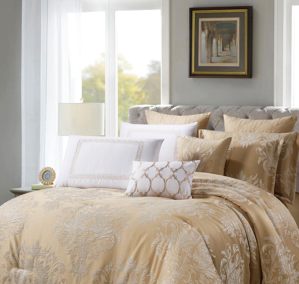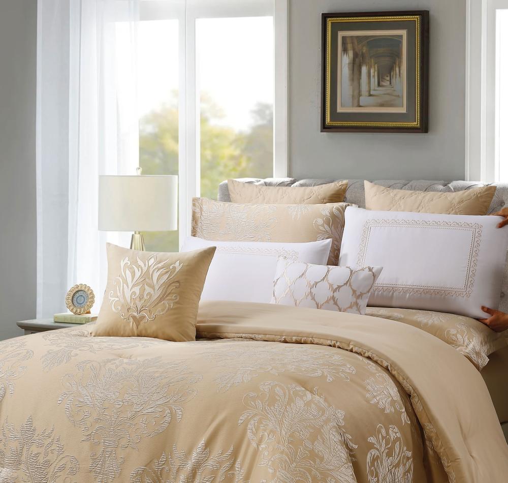 مفرش صيفي فاخر كوين جاكار مطرز 8 قطع – رومينا - بيج