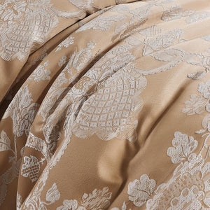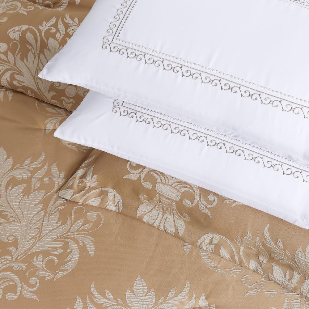 مصنوع من قماش جاكار مطرز بلمعان ناعم وتفاصيل راقية تعكس أناقة لا مثيل لها، بينما تمنحك الحشوة الخفيفة شعورًا بالانتعاش طوال الليل.