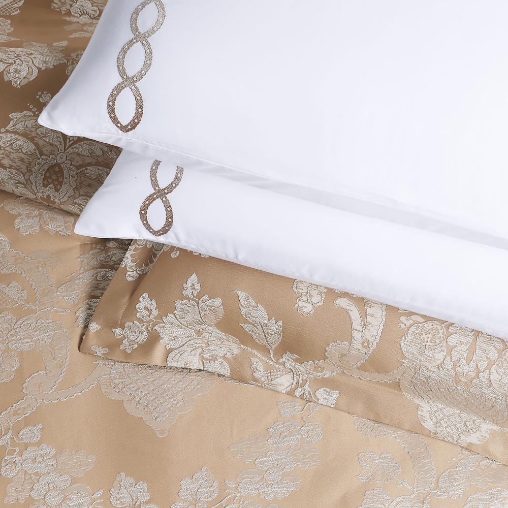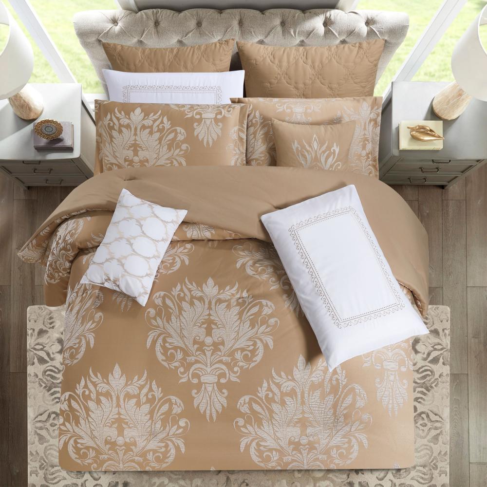 مفرش صيفي فاخر كوين جاكار مطرز 8 قطع – رومينا - بيج غامق