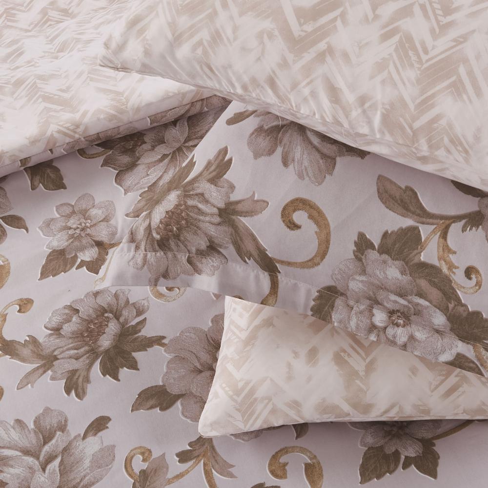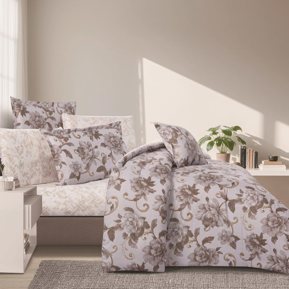 مفرش صيفي مقاس كوين وجهين ٧ قطع - فيفيان - رصاصي فاتح - كريمي