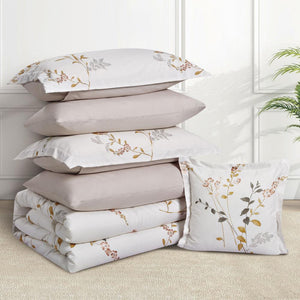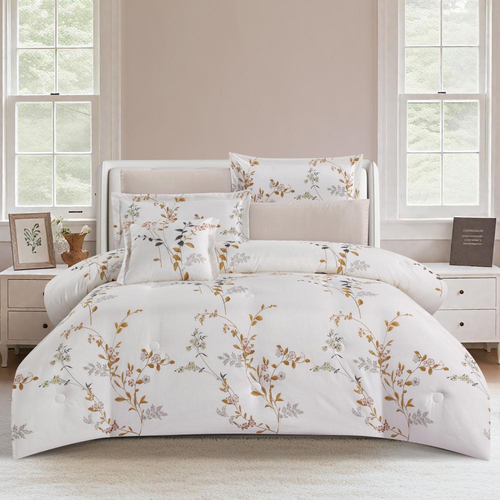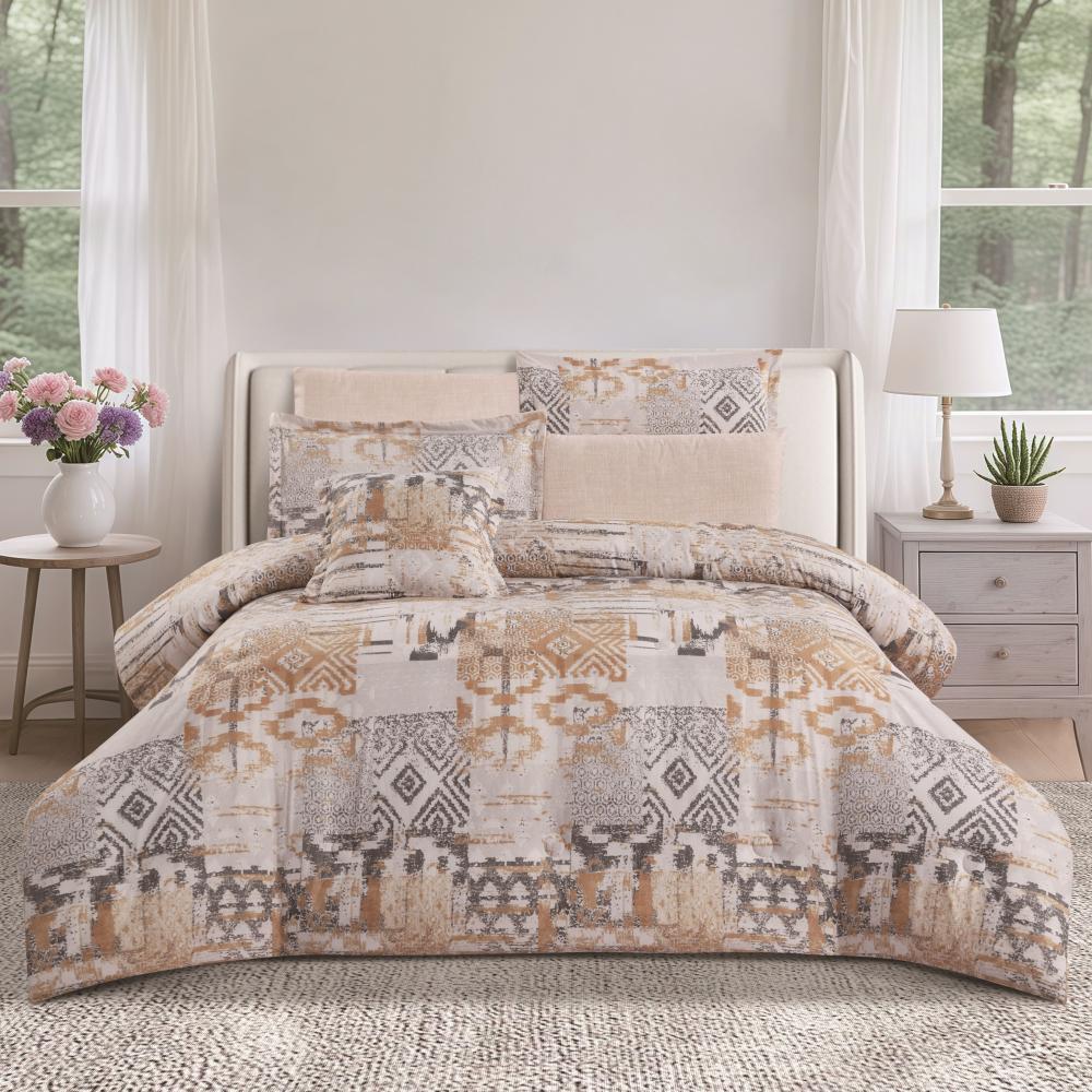 مفرش صيفي مقاس كوين وجهين ٧ قطع - فيفيان - كريمي - بيج