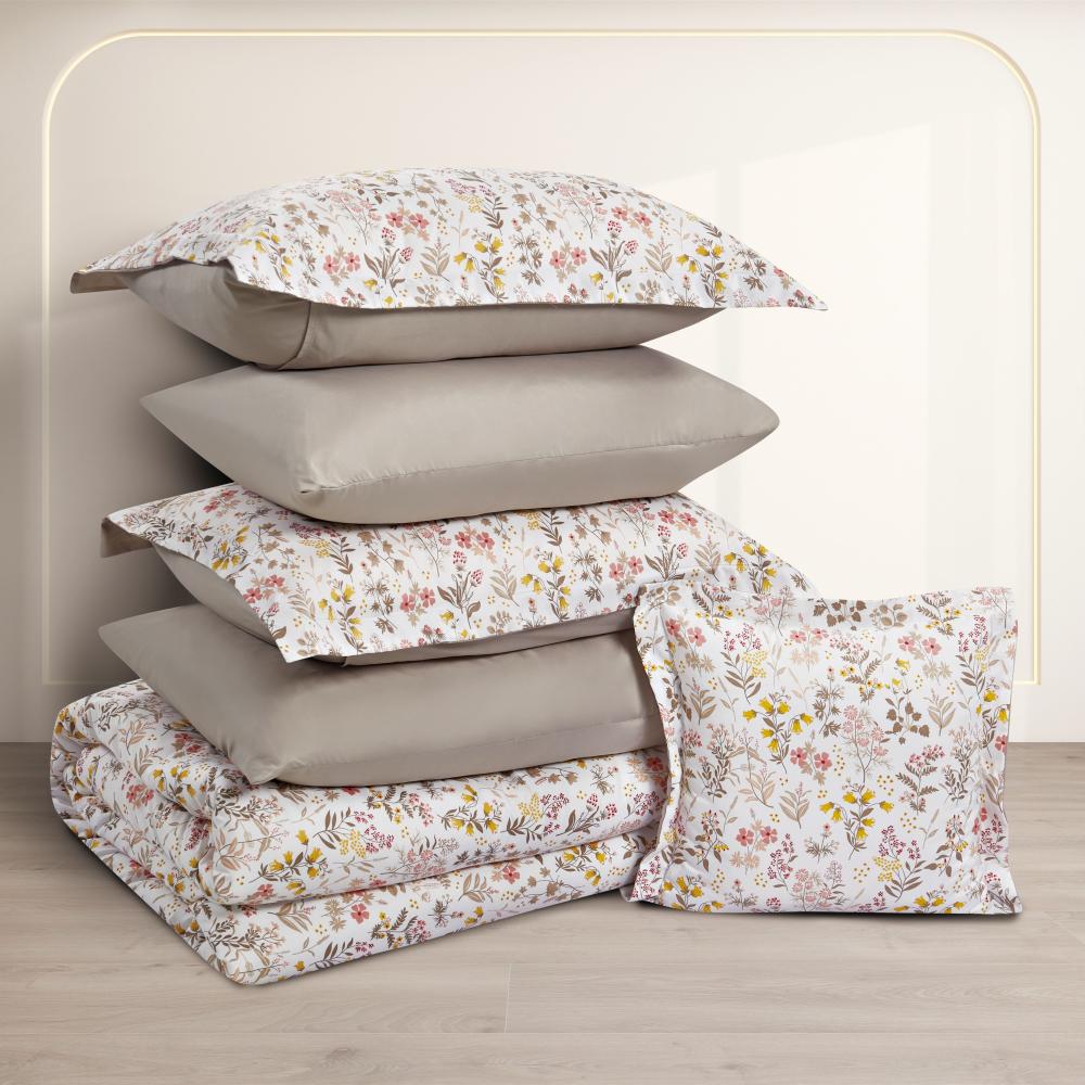 مفرش صيفي مقاس كوين وجهين ٧ قطع - فيفيان - كريمي - رمادي غامق