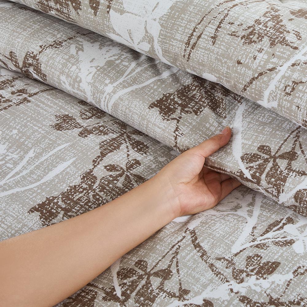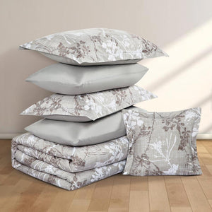 مفرش صيفي مقاس كوين وجهين ٧ قطع - ويلز - بيج غامق - رمادي