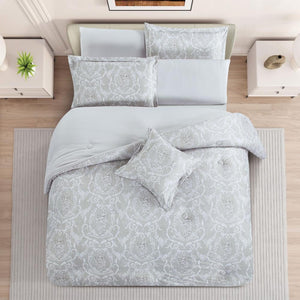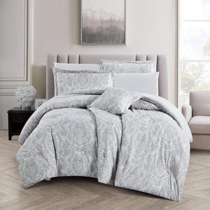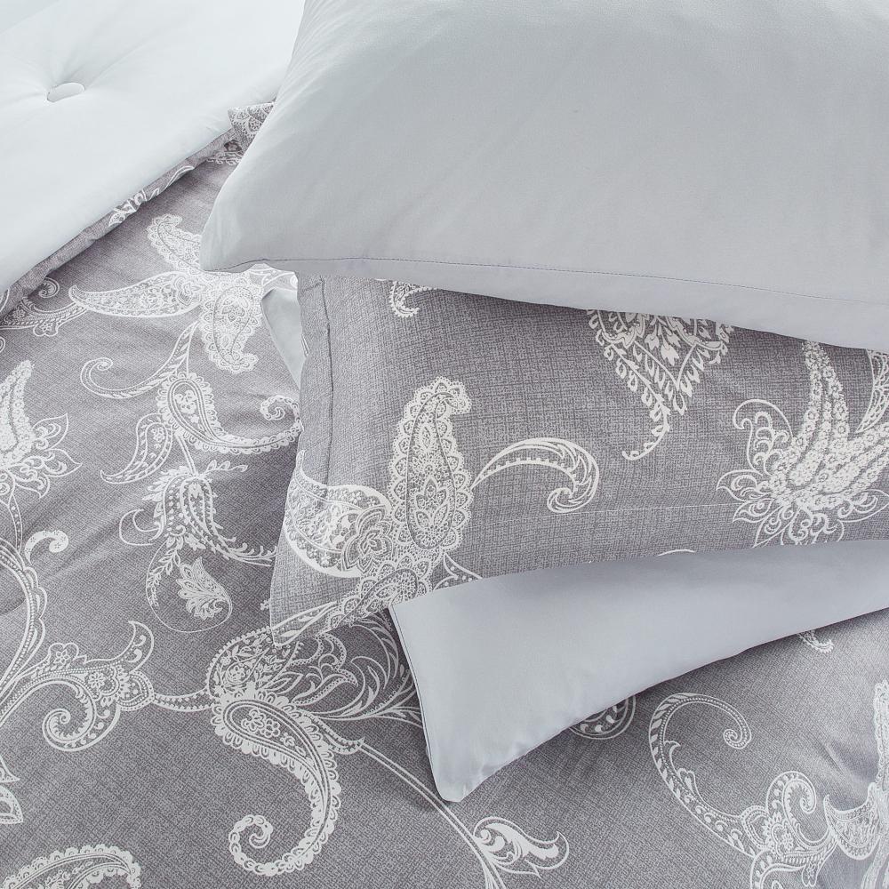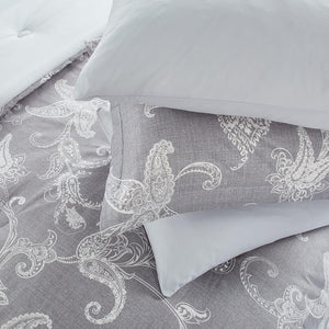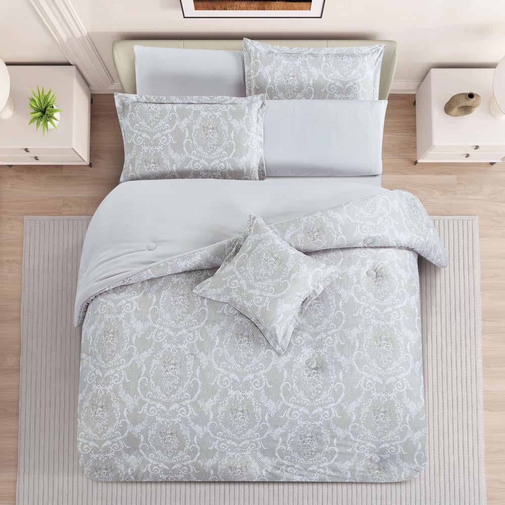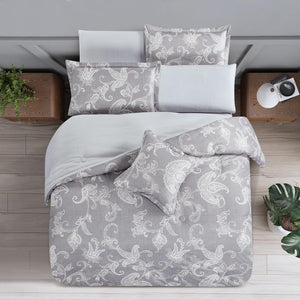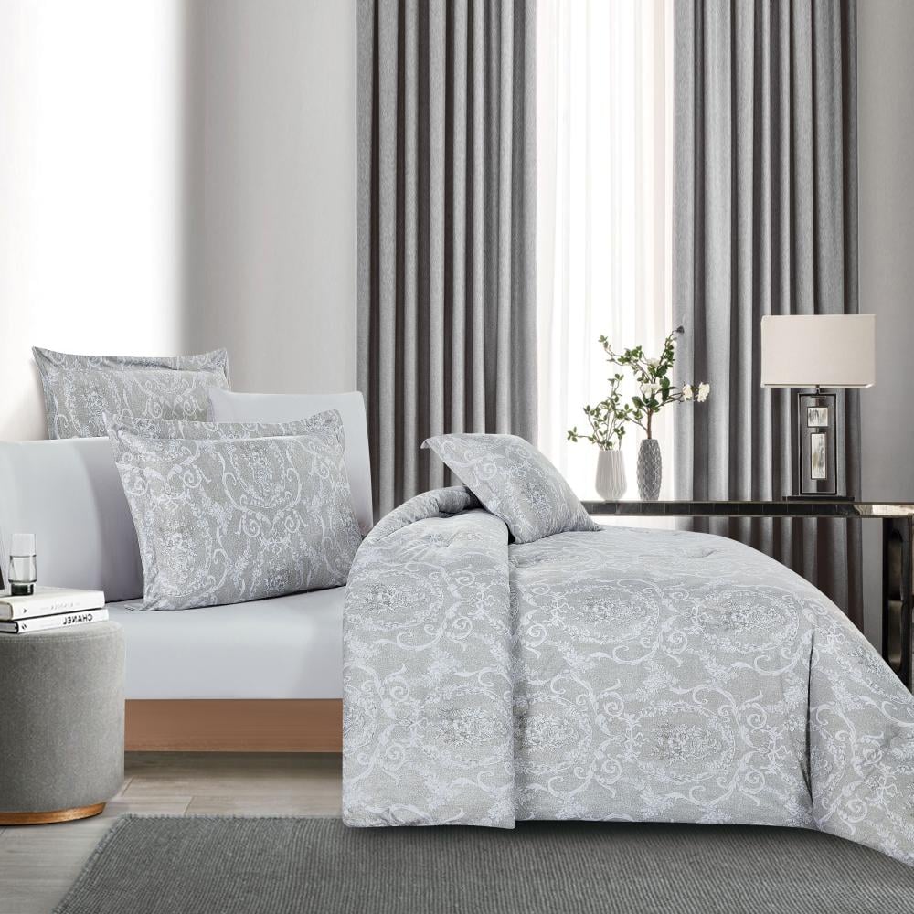 مفرش صيفي مقاس كوين وجهين ٧ قطع - ويلز - رمادي - رصاصي