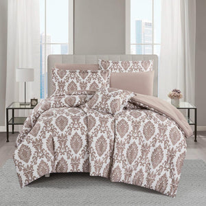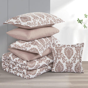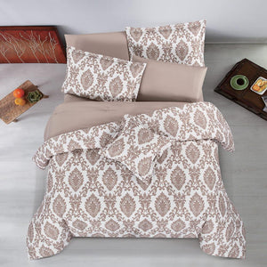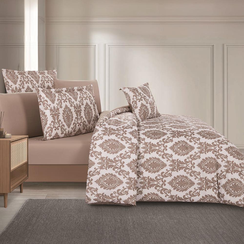 مفرش صيفي مقاس كوين وجهين ٧ قطع - ويلز -كريمي - بيج غامق