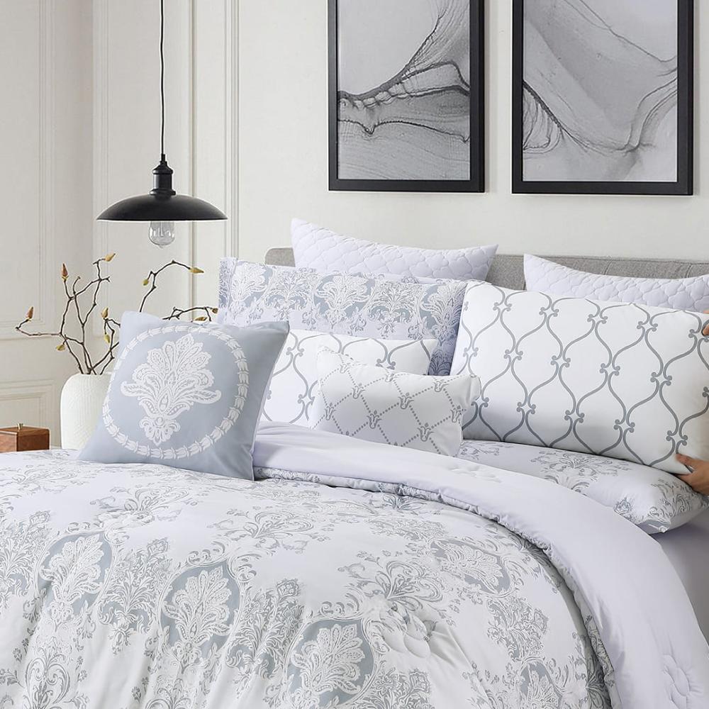 مفرش صيفي مقاس كوين 12 قطعة - كلاريس - رصاصي