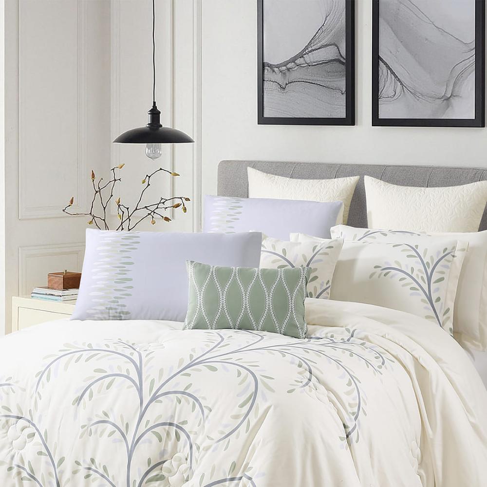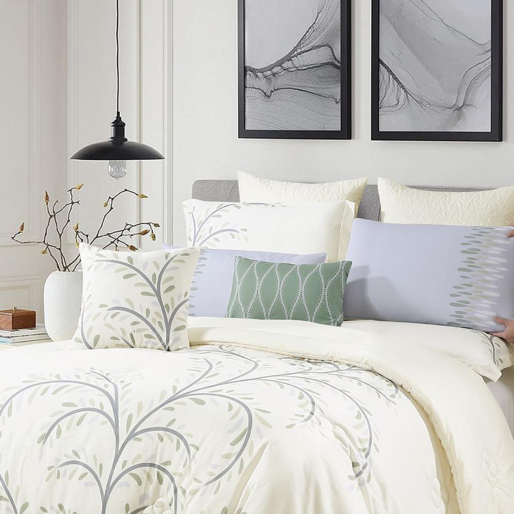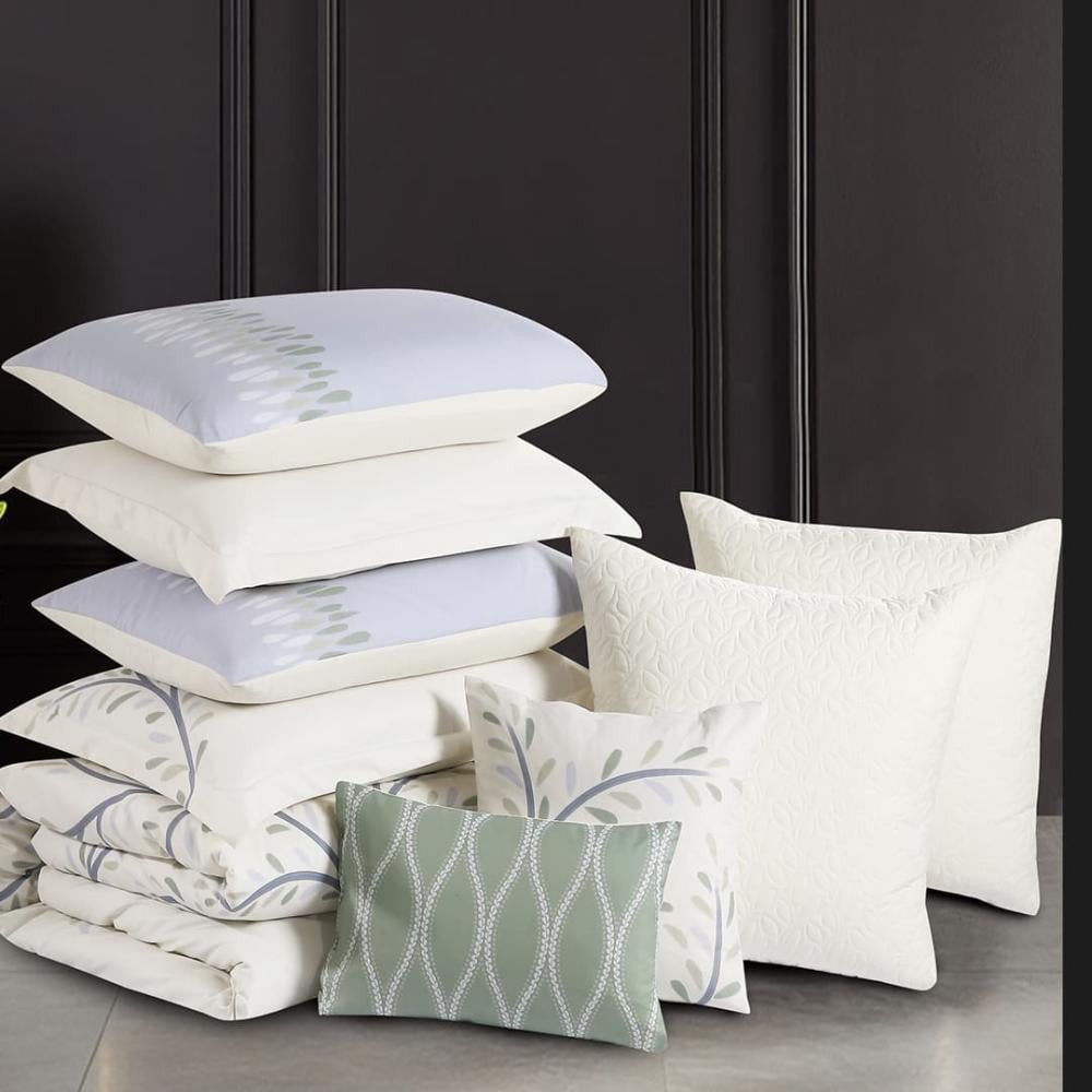 استمتعي بإطلالة مبهرة وأناقة لا تُضاهى مع مفرش "كلاريس" الصيفي. طقم فاخر مكوّن من 12 قطعة، صُمم ليمنح سريرك مظهراً ملكياً متكاملاً وخامة صيفية ناعمة توفّر لكِ الراحة والانتعاش في كل ليلة.