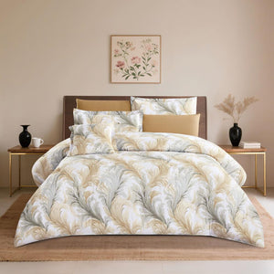 مفرش قطن صيفي مقاس كوين 8 قطع - فيوليتا - بيج - بيج غامق