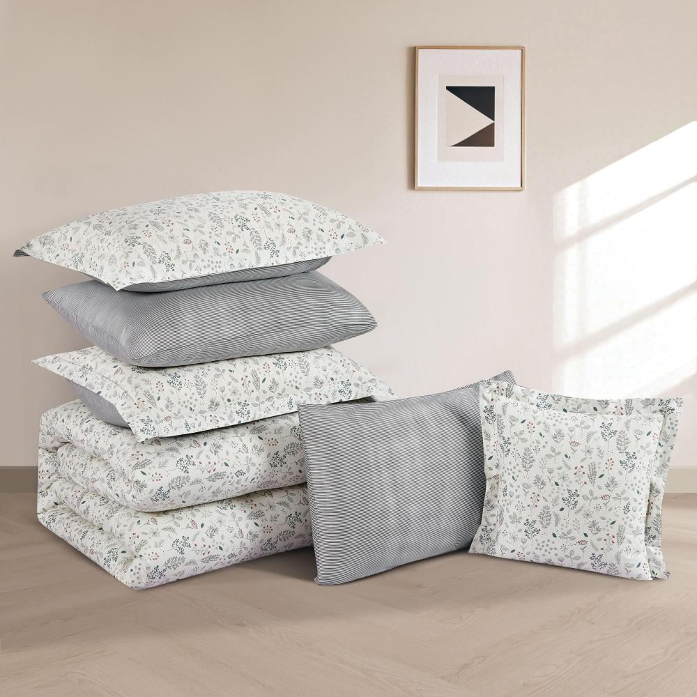 مفرش قطن صيفي مقاس كوين 8 قطع - نوفارين - سكري - رمادي