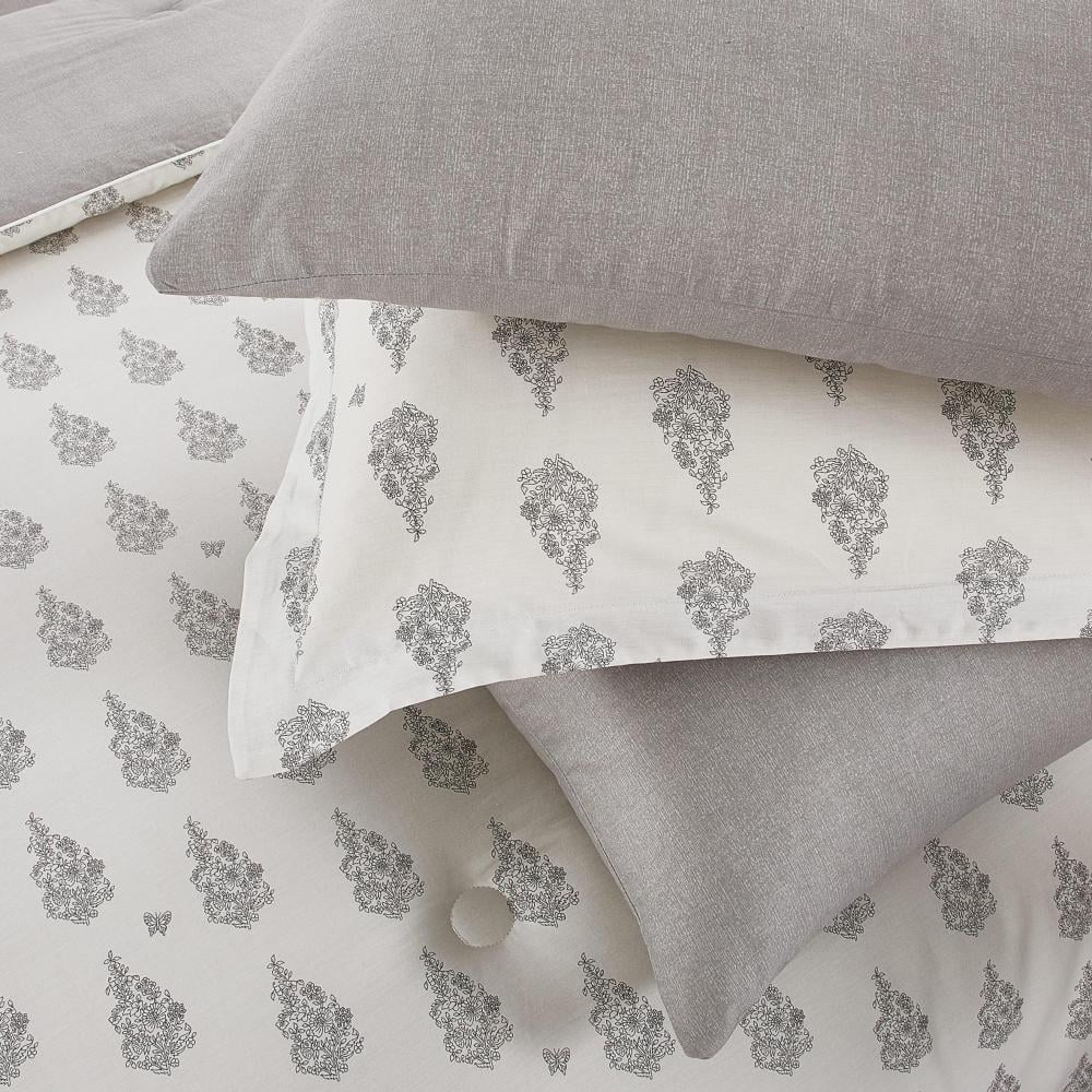 مفرش قطن صيفي مقاس كوين 8 قطع - نوفارين - كريمي - رمادي