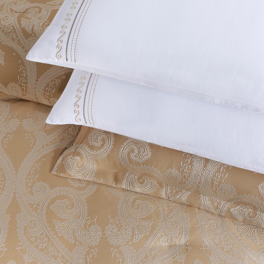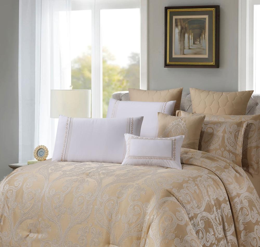 مفرش صيفي فاخر مزدوج جاكار مطرز 12 قطعة – كاسيانا - اللون بيج