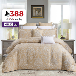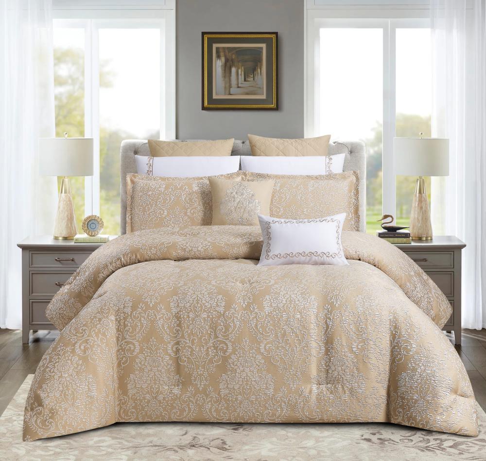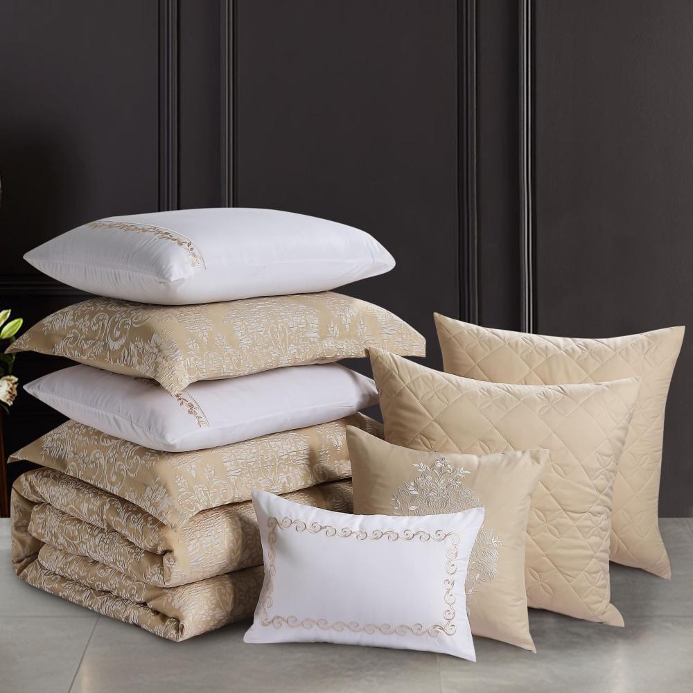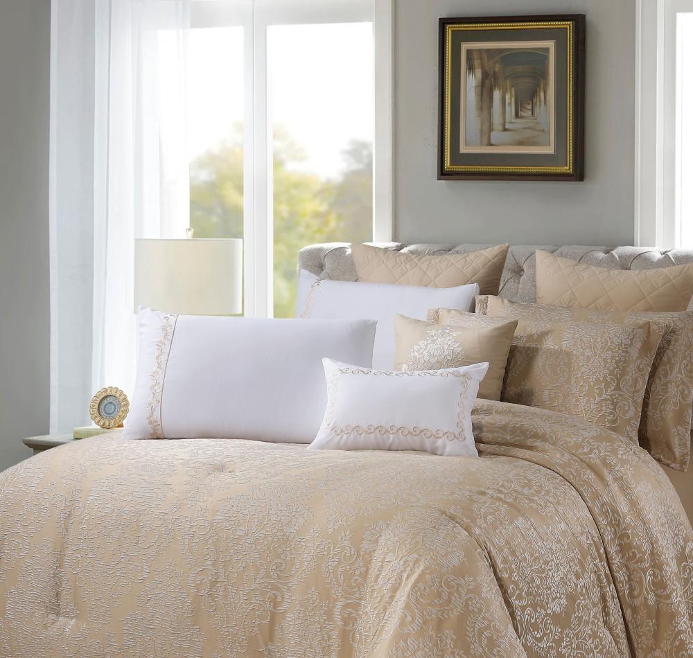 مفرش صيفي فاخر مزدوج جاكار مطرز 12 قطعة – كاسيانا - لون بيج