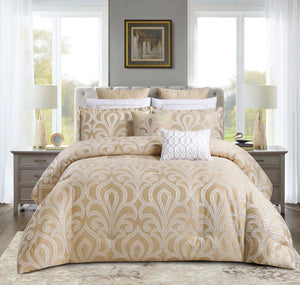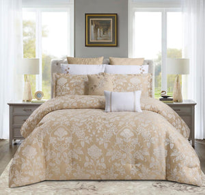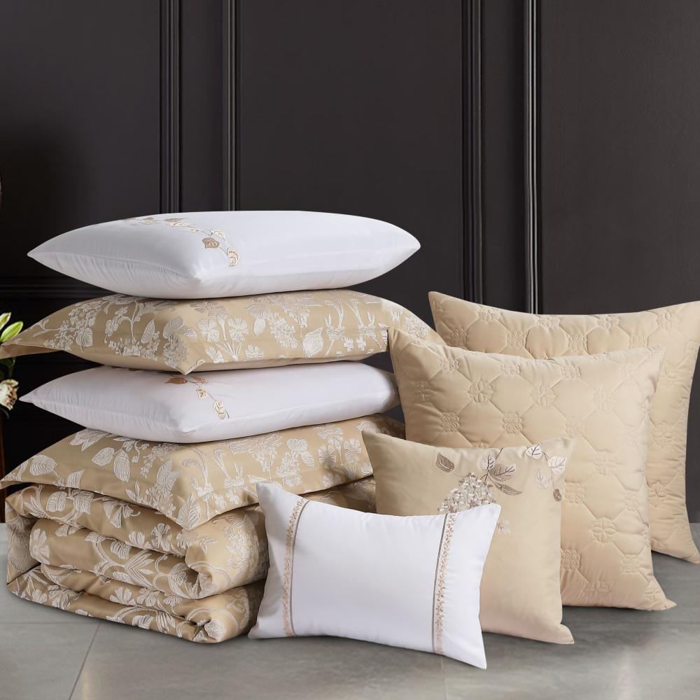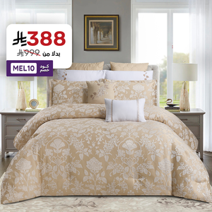 مفرش صيفي فاخر مزدوج جاكار مطرز 12 قطعة – كاسيانا - لون بيج فاتح