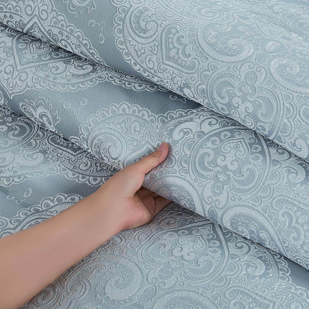 تم تصميم هذا المفرش من قماش الجاكار الفاخر بنقشة منسوجة بتصميم كلاسيكي هندسي، يجمع بين تفاصيل الروكوكو الفاخرة وتماثل زخرفي مستوحى من القصور الإيطالية تضفي طابعًا كلاسيكيًا دافئًا على غرفة نومك مع التطريز البارز اللذي يعطيك شعور الفخامة الملكية.