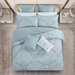 مفرش صيفي فاخر مزدوج جاكار مطرز 12 قطعة – لوتشيني Lucini– ازرق ضبابي