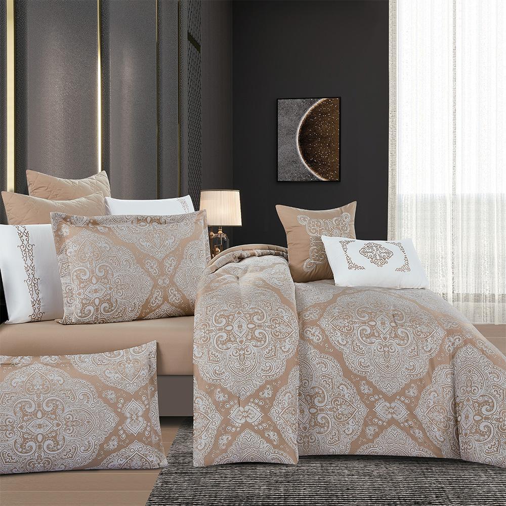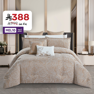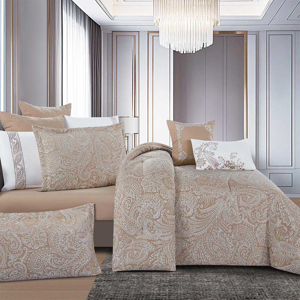 مفرش صيفي فاخر مزدوج جاكار مطرز 12 قطعة – لوتشيني Lucini– بيج غامق