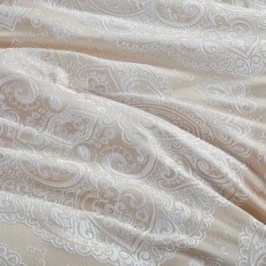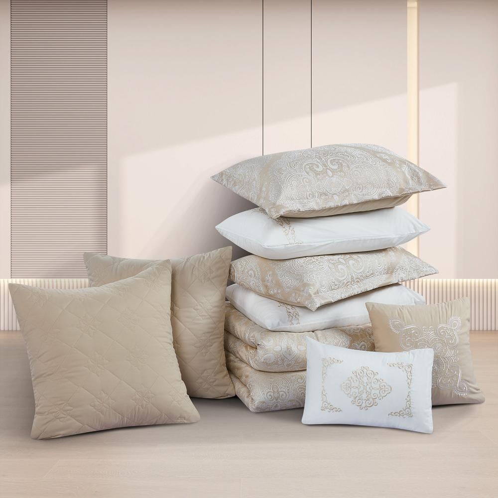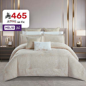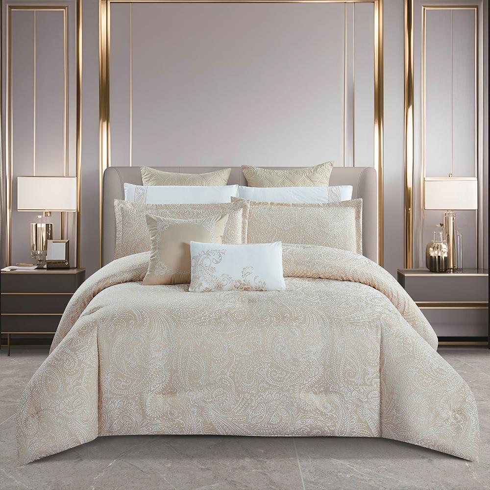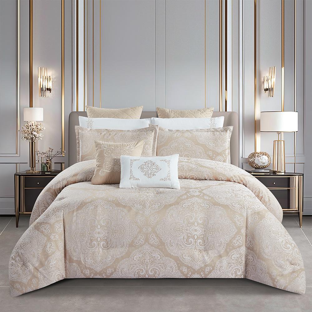 مفرش صيفي فاخر مزدوج جاكار مطرز 12 قطعة – لوتشيني Lucini– بيج فاتح
