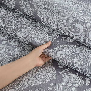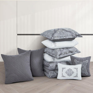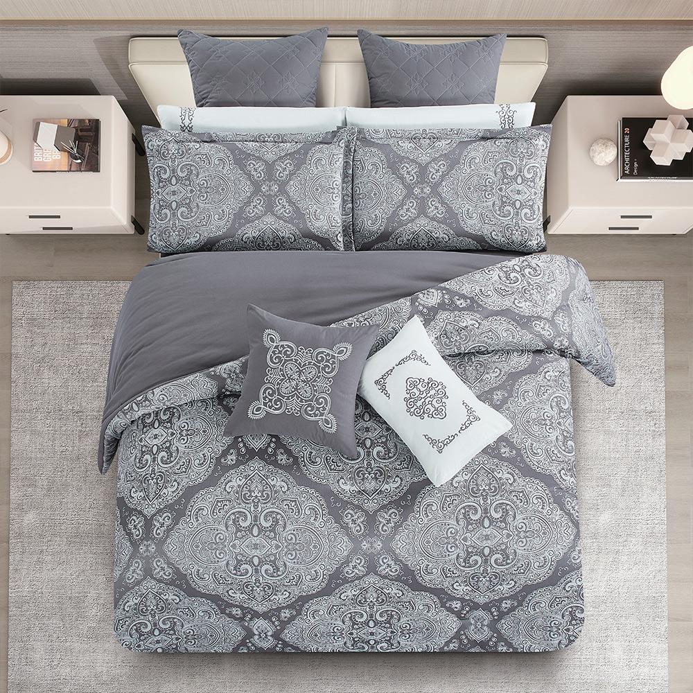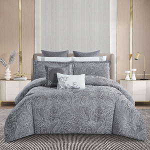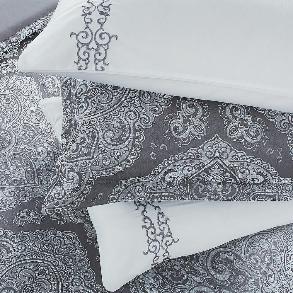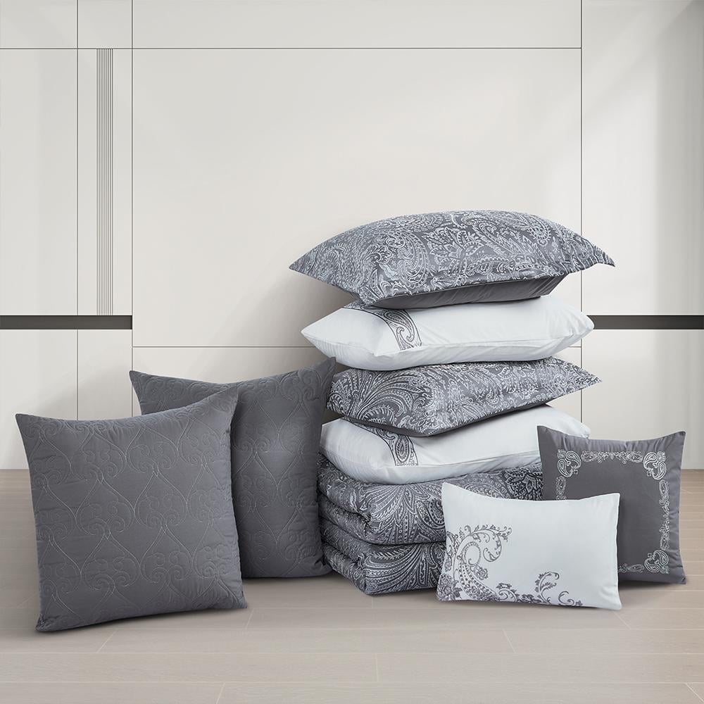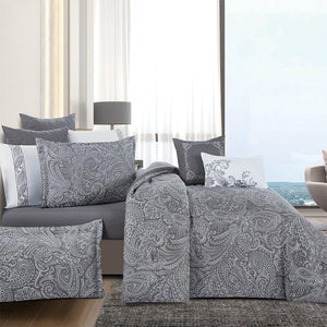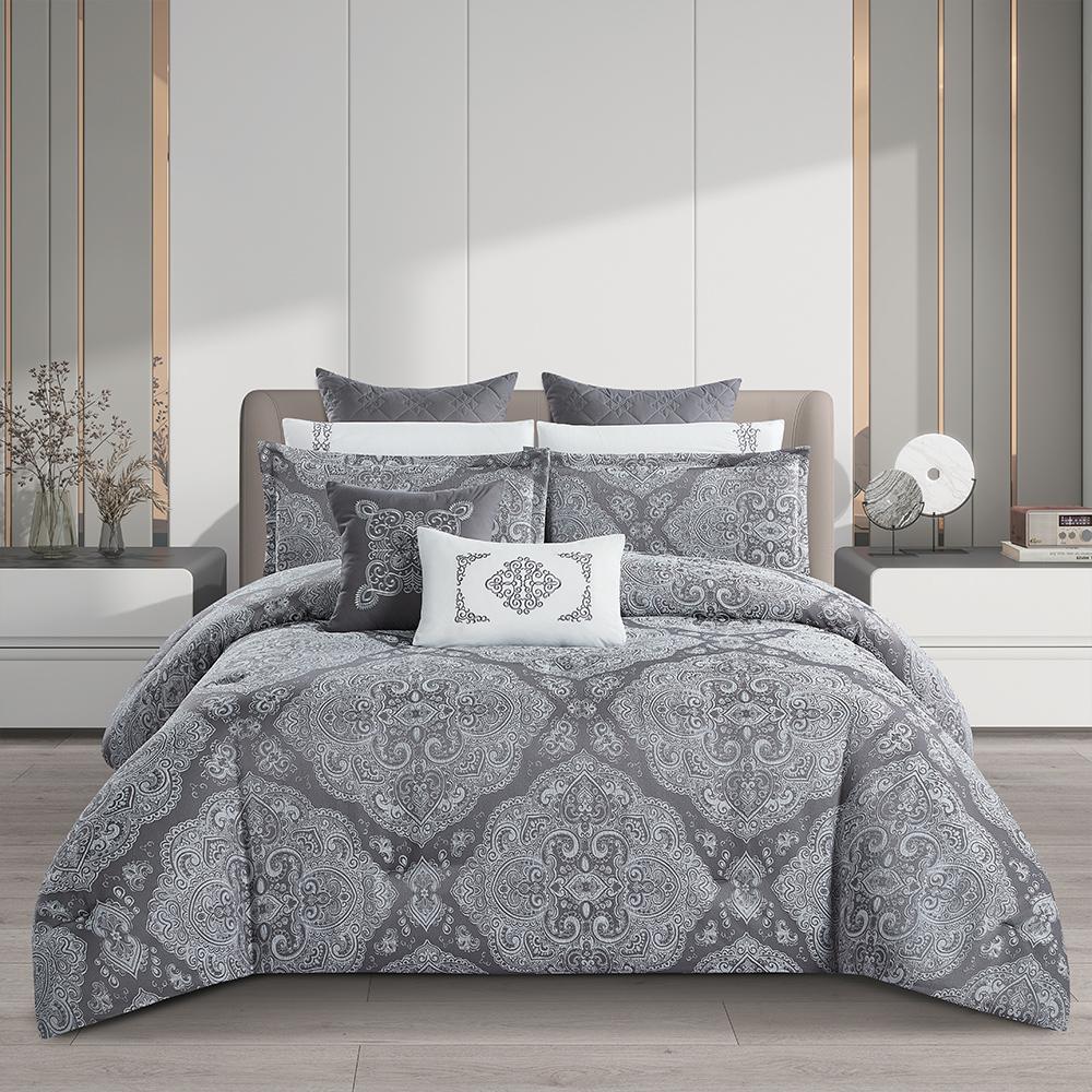 مفرش صيفي فاخر مزدوج جاكار مطرز 12 قطعة – لوتشيني Lucini– رمادي غامق