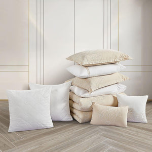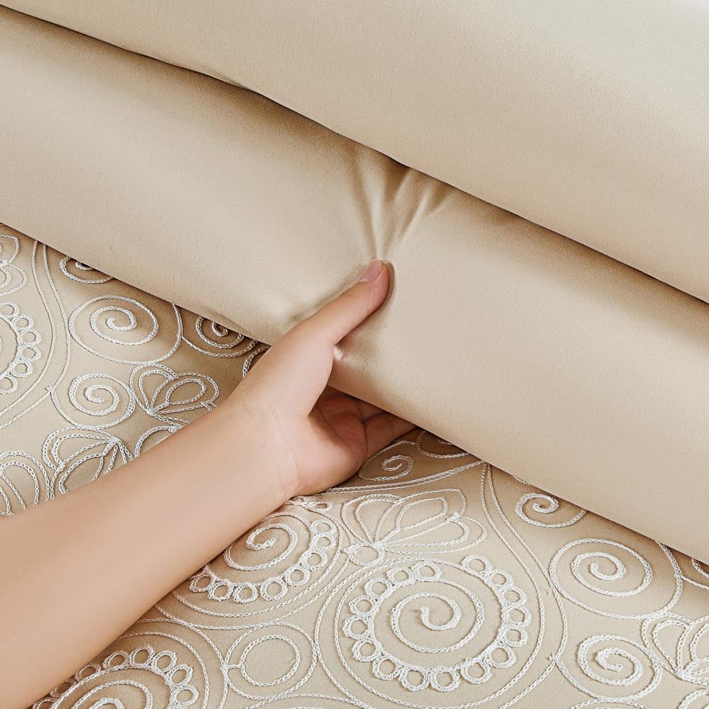 مفرش صيفي مزدوج مطرز فاخر 12 قطعة - سينيا - بيج غامق
