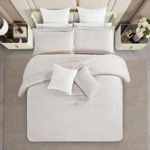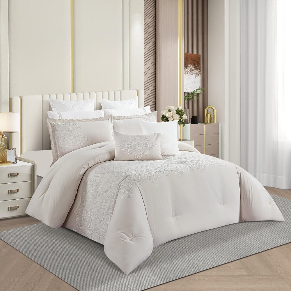 مفرش صيفي مزدوج مطرز فاخر 12 قطعة - سينيا - بيج فاتح