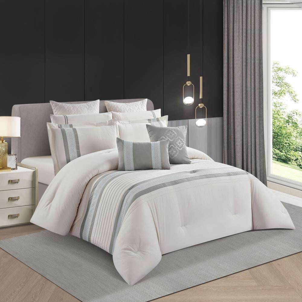 مفرش صيفي مزدوج مطرز فاخر 12 قطعة - لوسو - بيج فاتح