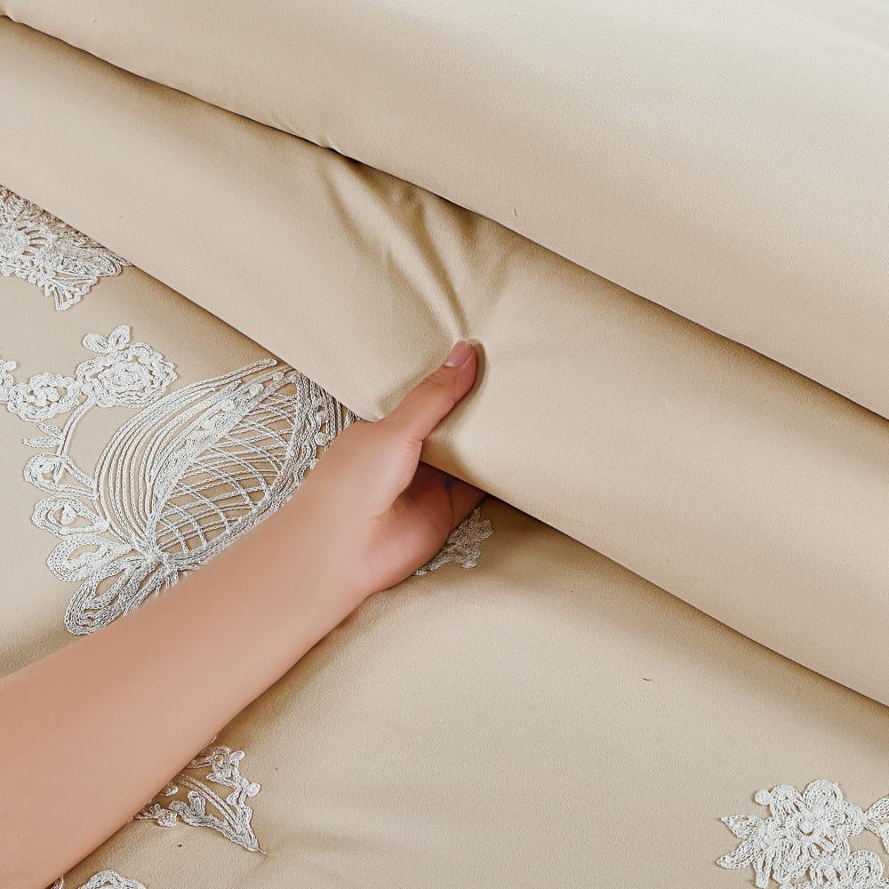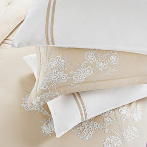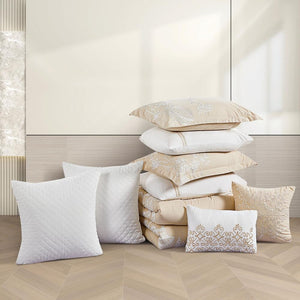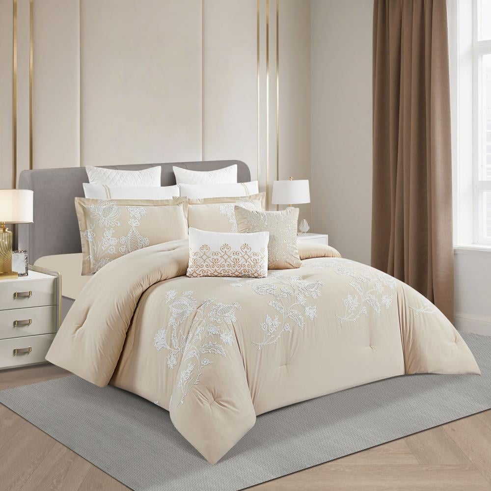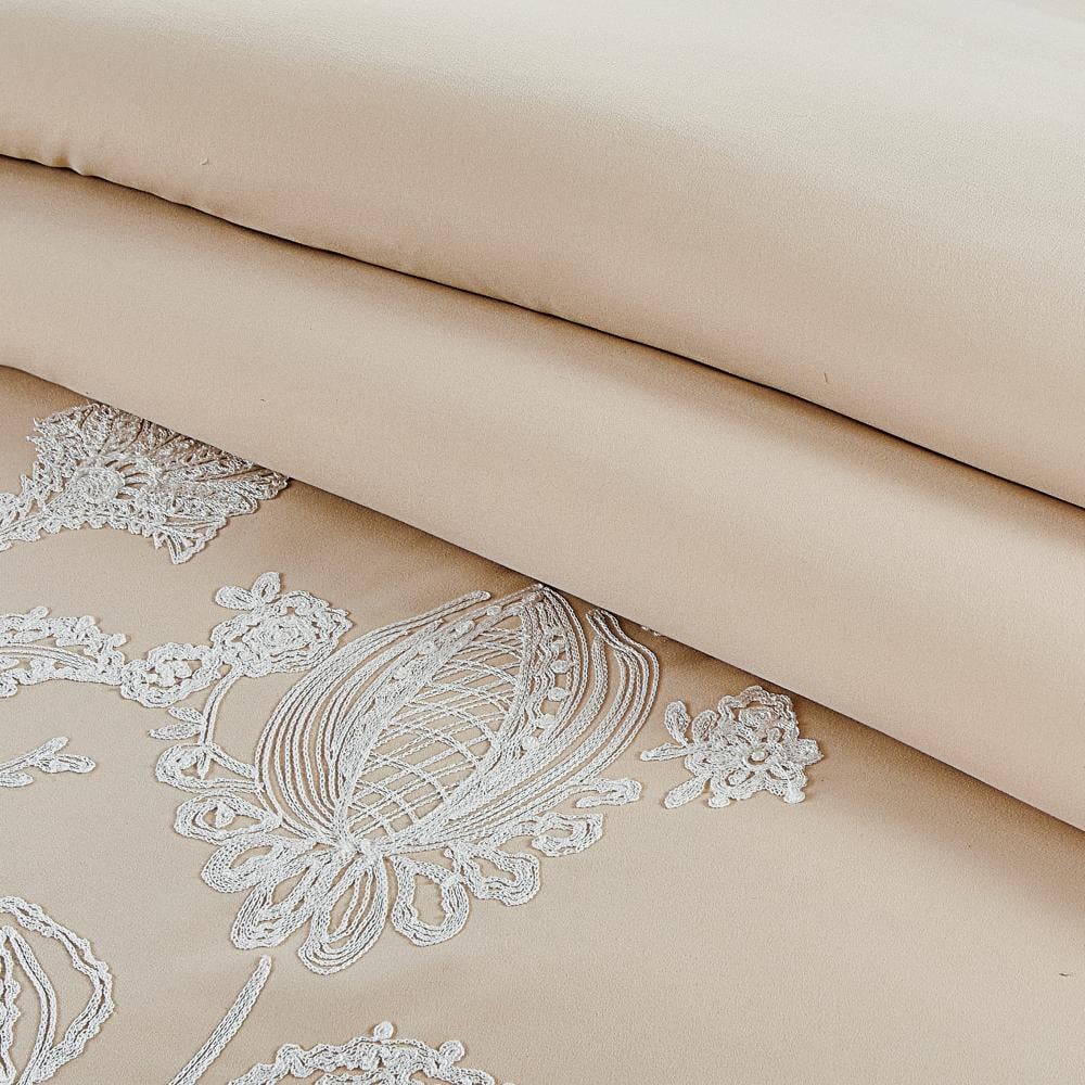 مفرش صيفي مزدوج مطرز فاخر 12 قطعة - ليوني - بيج