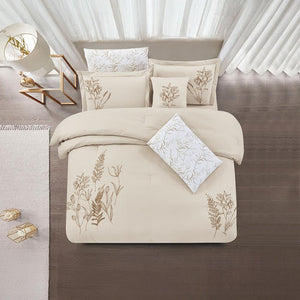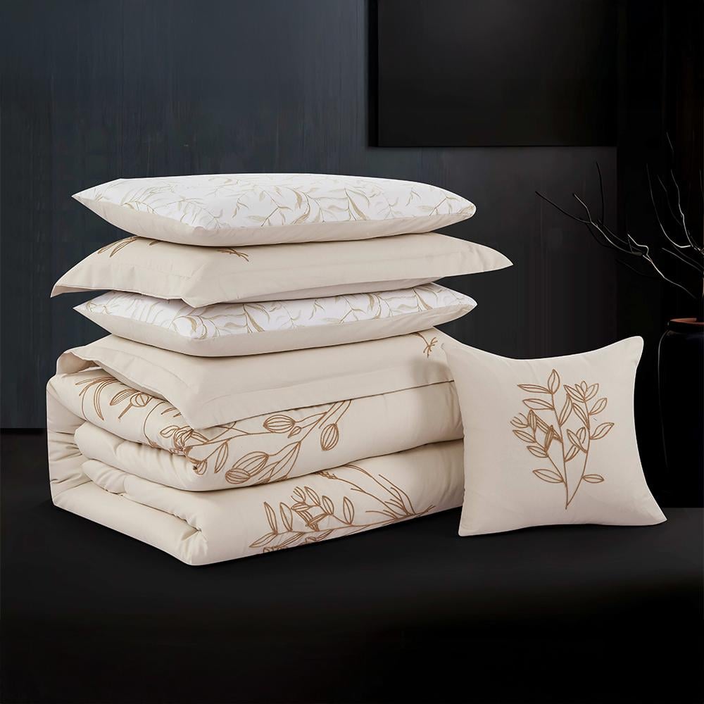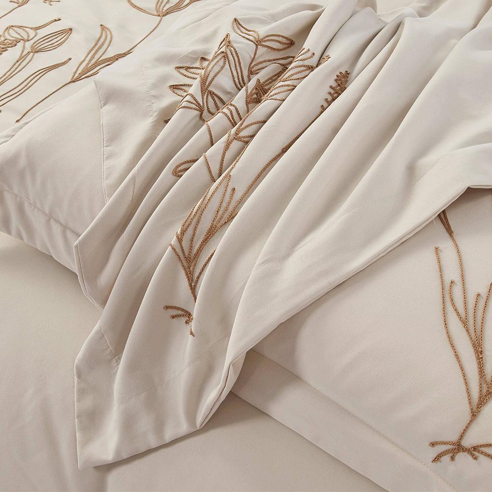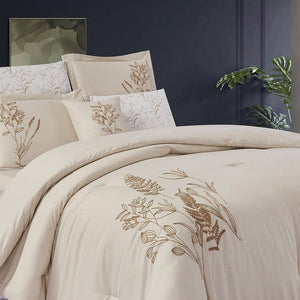 مفرش صيفي مزدوج مطرز فاخر 7 قطع - يودوكيا - بيج فاتح