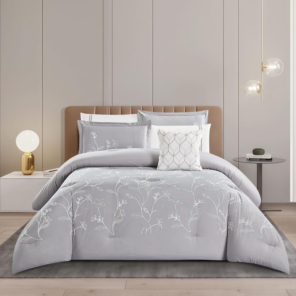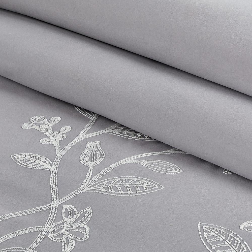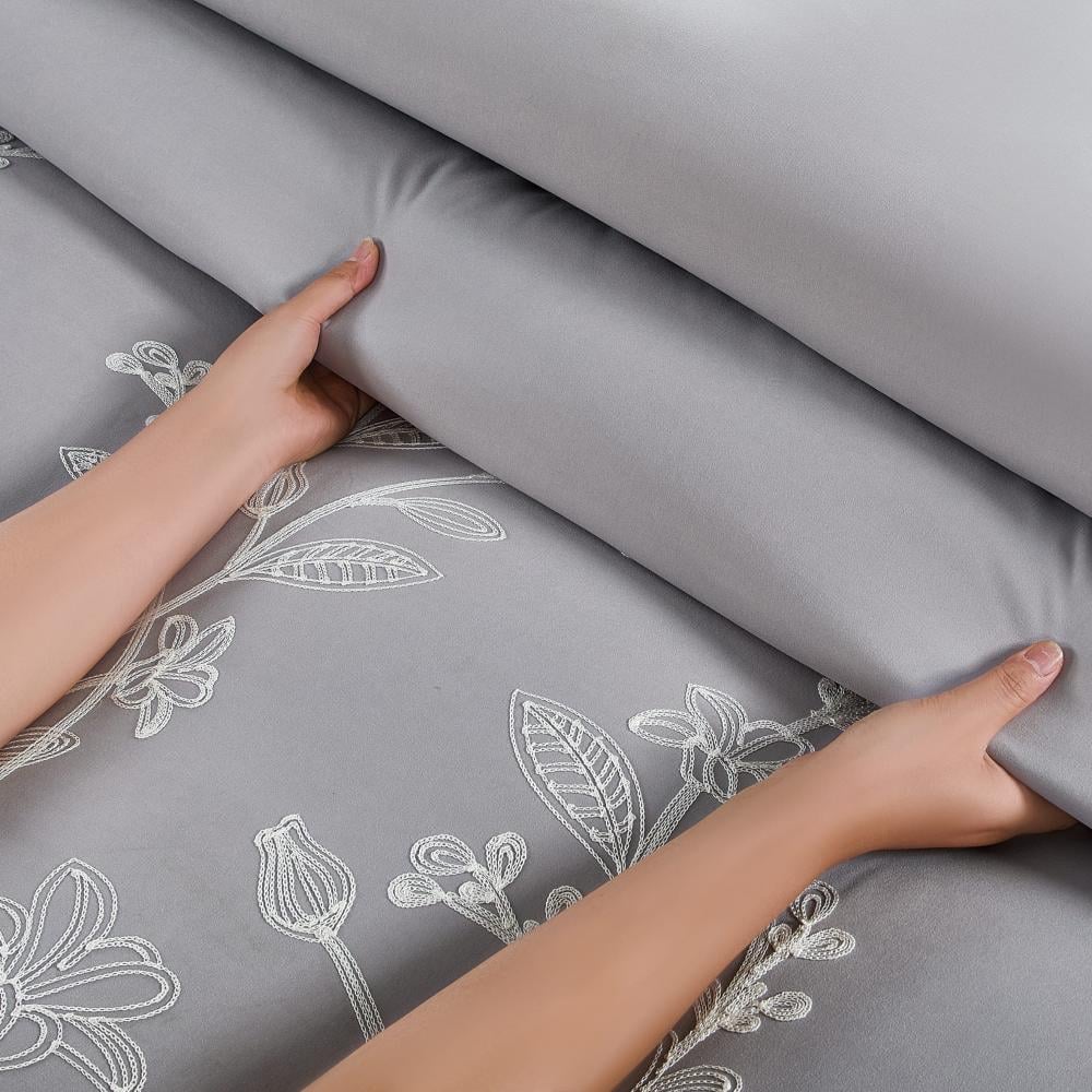 مفرش صيفي مزدوج مطرز فاخر 8 قطع - ايزابيلا - رمادي