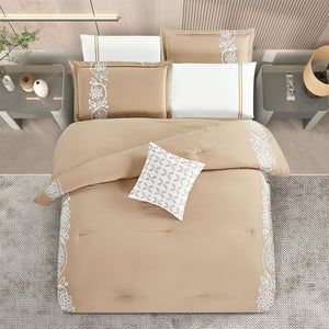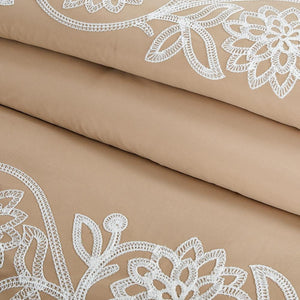 مفرش صيفي مزدوج مطرز فاخر 8 قطع - بيانكا - بيج غامق