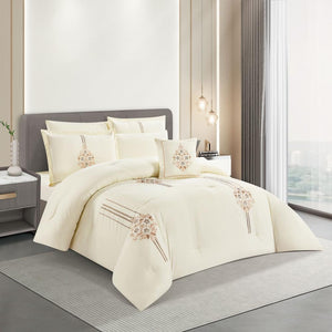 مفرش صيفي مزدوج مطرز فاخر 8 قطع - هيستيا - كريمي