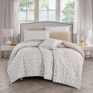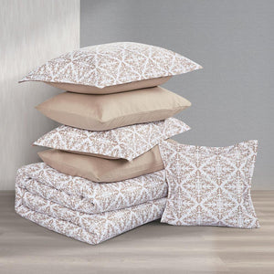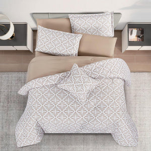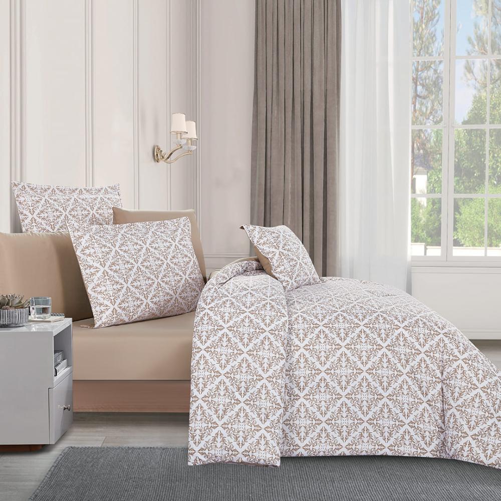 مفرش صيفي مزدوج وجهين ٧ قطع - اوركا - ابيض -بيج غامق